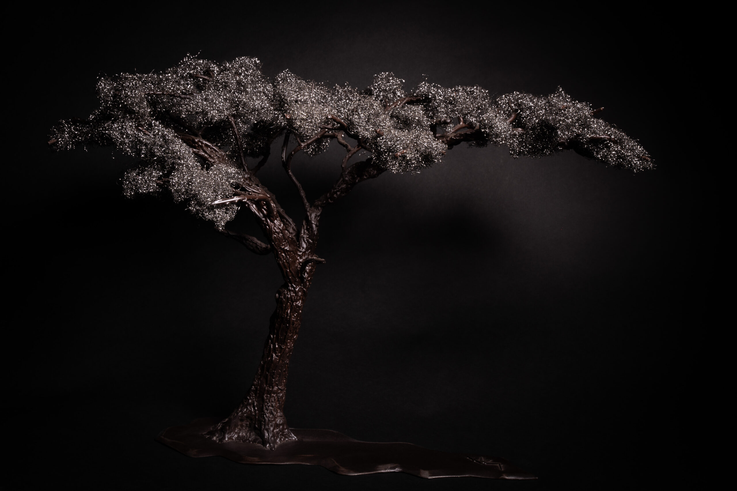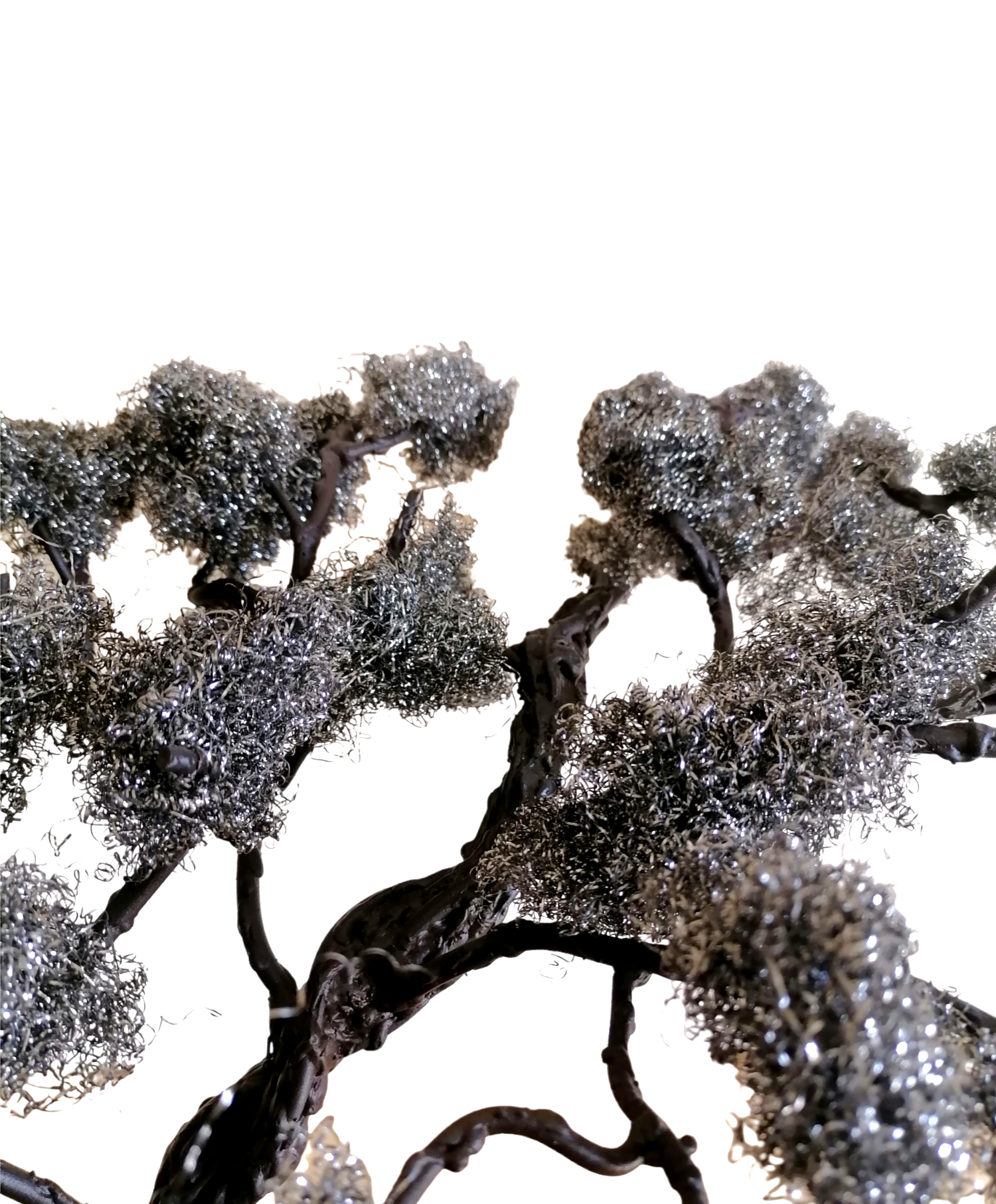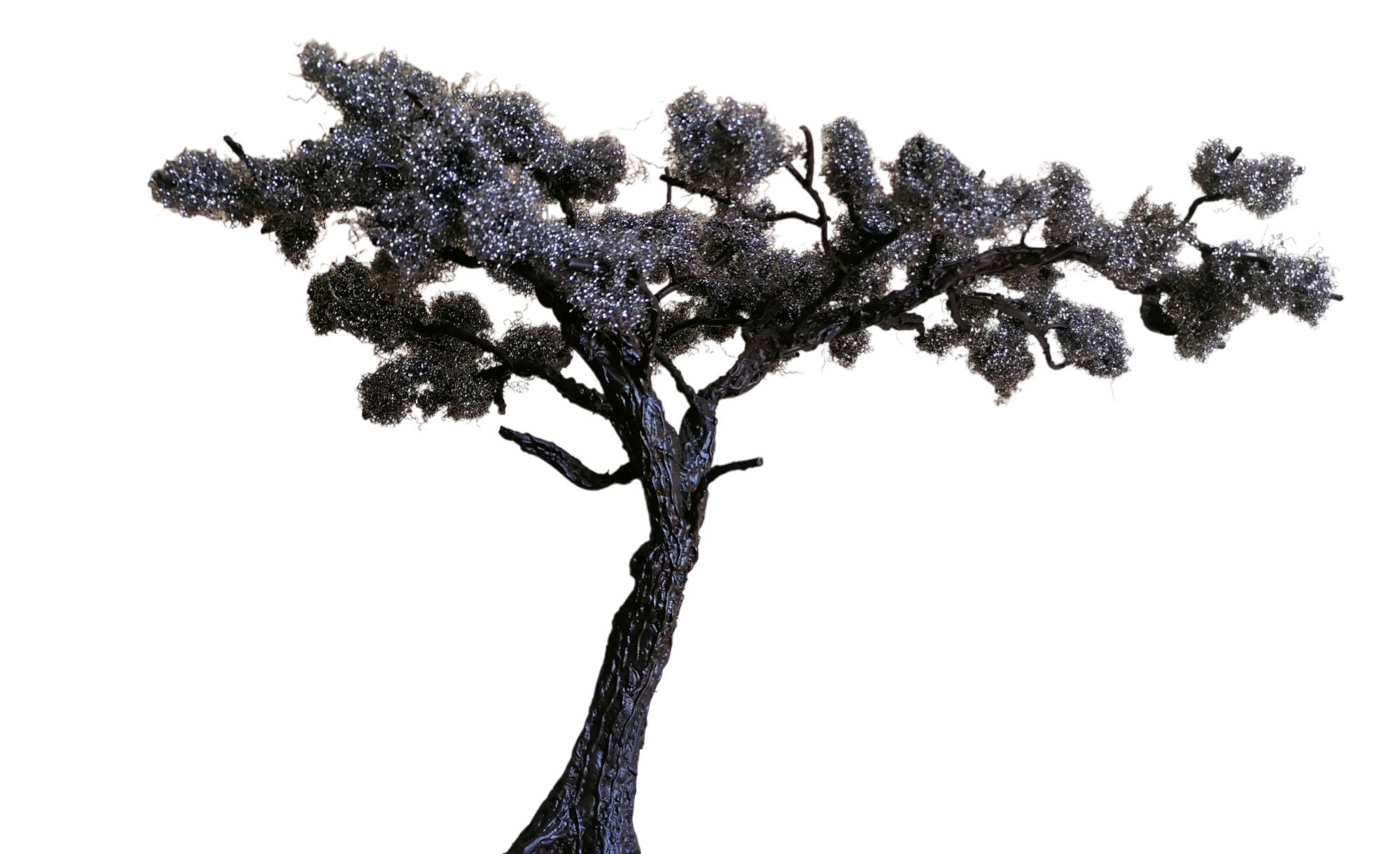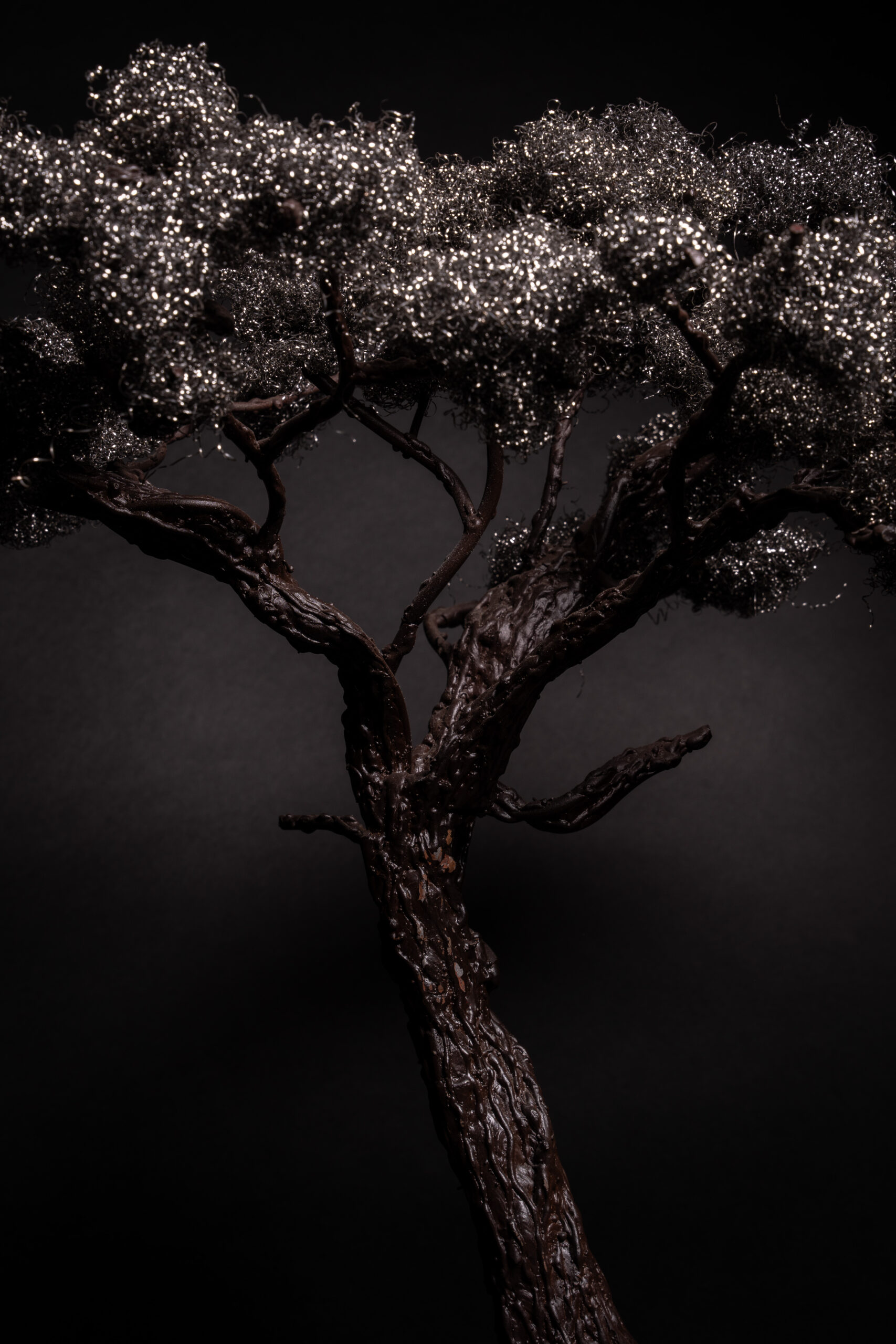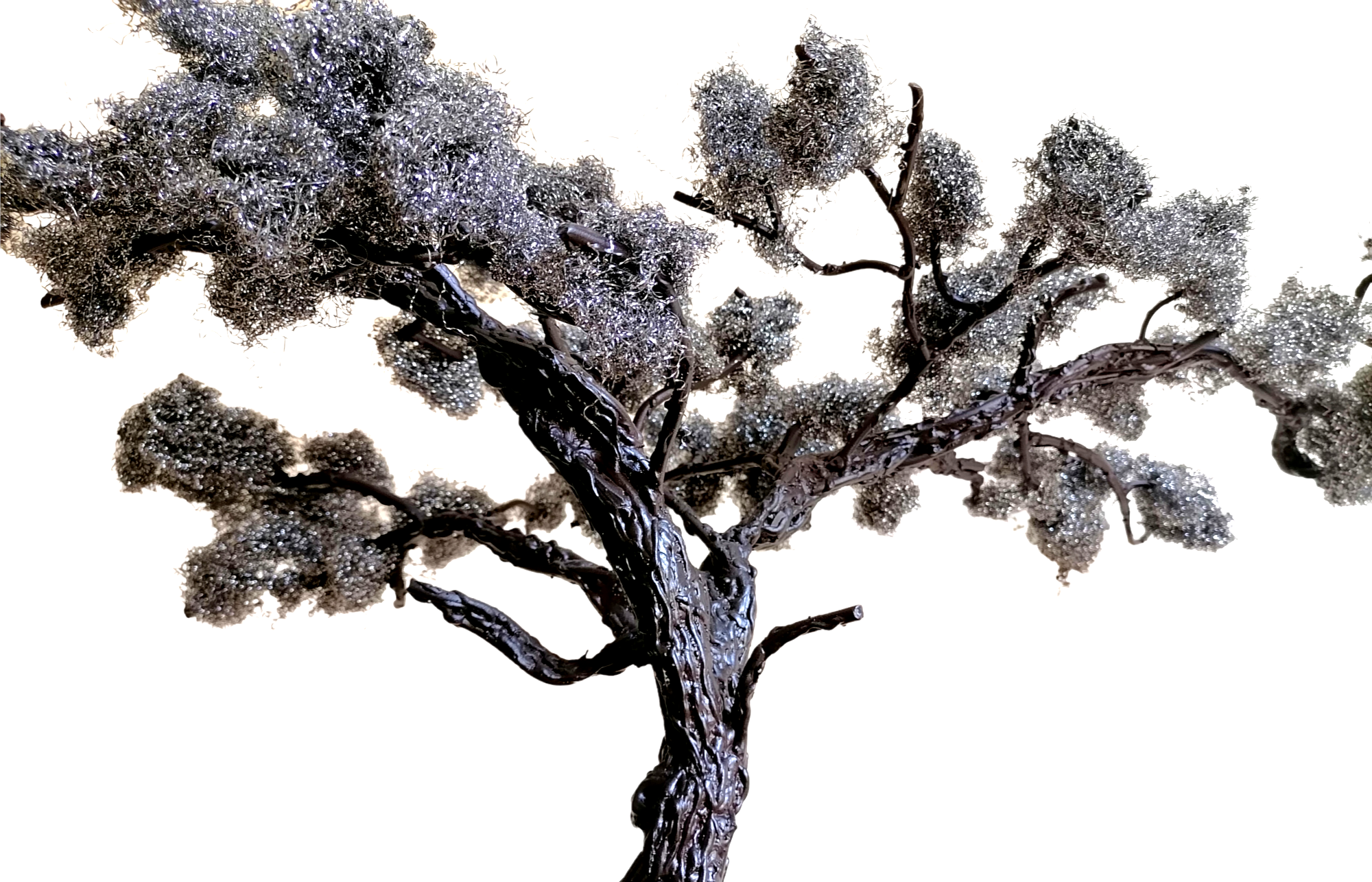 Foliage is made from pot wire which is attached directly onto the handmade branches of the tree.